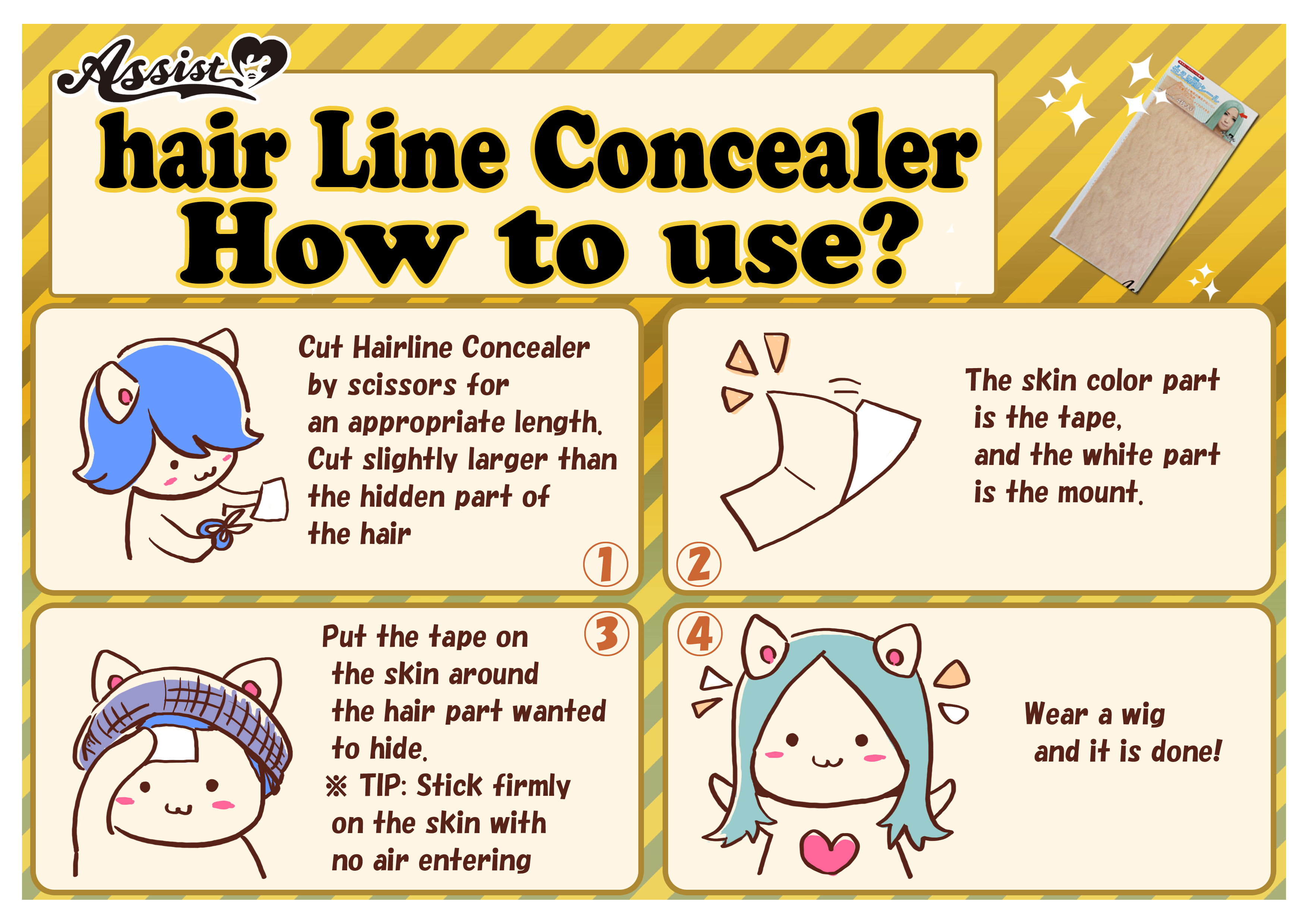 Features of the “Hairline Hide Sticker” that securely hides the hairline of your own hair