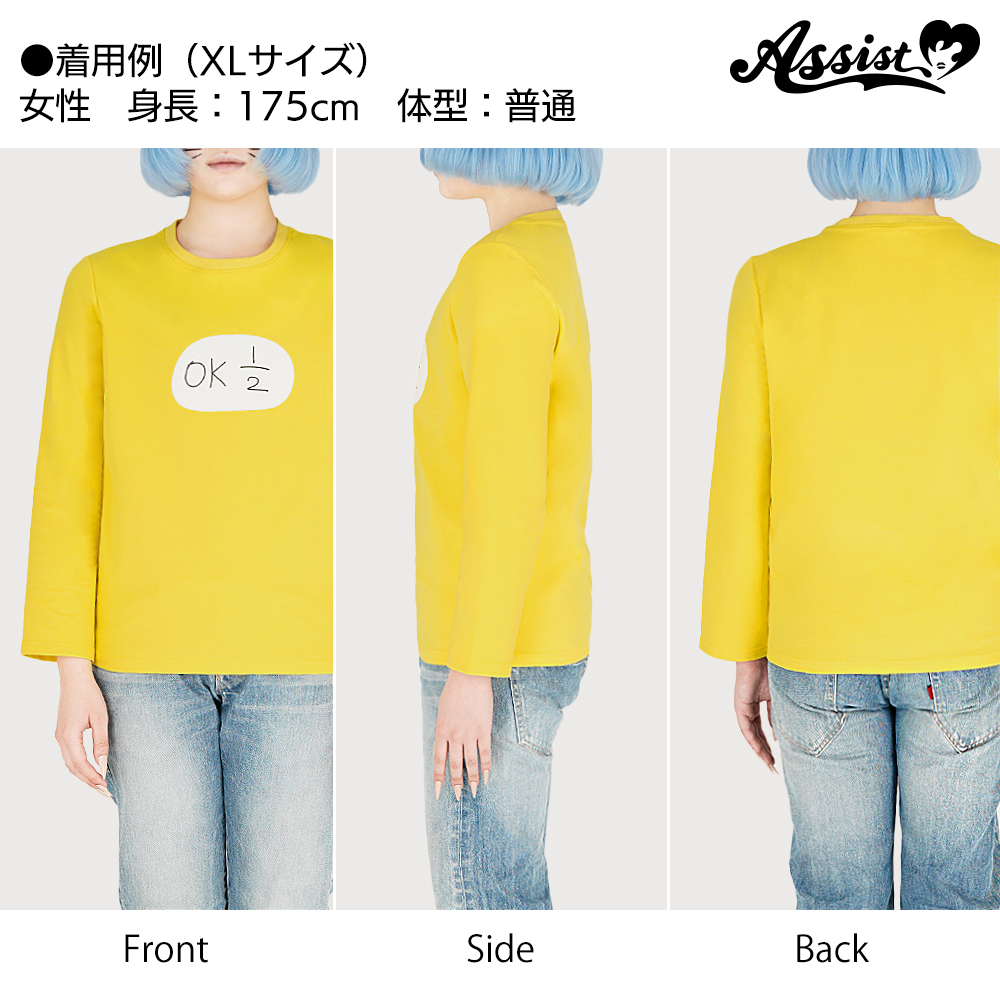 This long-sleeve T-shirt boldly features the handwritten “1/2” logo by the creator,capturing Nyon’s delicate and ambiguous presence just as it is.